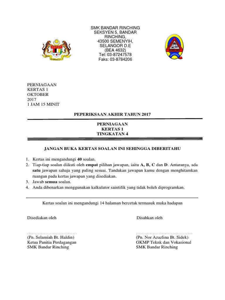 Contoh Kertas Peperiksaan Perniagaan Kertas 2 Tingkatan 4